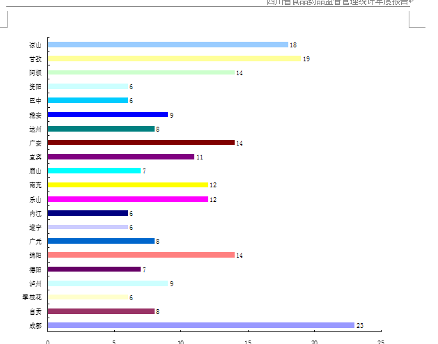 四川省食品药品监督管理局 说明 本报告所用数据来源于《2017年定期统计报表制度》年报和季报报表。数据报告期为2016年12月至2017年11月。报表主要涉及食品药品监管基本情况,包括对“四品一械”的行政许可情况、药品、J9九游会娱乐注册审批情况、投诉举报案件查处等情况。本报告分别对食品、保健食品、药品、化妆品、J9九游会娱乐的相关行政受理、审批、监管情况进行了汇总分析,供系统内参考使用。 目录 第一部分食品药品监管系统基本情况 一、机构情况 (一)行政机构 (二)事业单位 二、人员情况 (一)行政机构人员情况 (二)行政机构领导班子情况 (三)事业单位人员情况 三、培训情况 (一)行政机构干部教育培训情况 (二)事业单位人员培训情况 四、检验检测机构资质情况 第二部分食品监督管理 一、食品监管许可情况 (一)食品经营许可情况 (二)食品日常监管情况 (三)食品投诉举报情况 二、食品案件查处情况 (一)生产环节违法食品安全案件 (二)经营环节违法食品安全案件 三、食品抽样检验情况 第三部分 保健食品监督管理 一、保健食品生产企业许可情况 二、保健食品生产经营企业日常监管情况 三、保健食品案件查处情况 四、保健食品广告审批及查处情况 五、保健食品投诉举报情况 第四部分 药品监督管理 一、省局行政审批情况 二、药品经营企业许可情况 三、药品生产企业GMP认证情况 四、药品GSP检查员情况 五、药品生产企业日常监管情况 六、药品案件查处情况 七、地方药品抽检情况 八、药品投诉举报情况 九、麻醉药品、精神药品和药品类易制毒化学品生产经营定点情况 十、执业药师注册人员参加继续教育情况 十一、药品广告审批及查处情况 第五部分 化妆品监督管理 一、化妆品生产企业生产许可情况 二、化妆品生产企业日常监督情况 三、化妆品案件查处情况 四、化妆品投诉举报情况 第六部分 J9九游会娱乐监督管理 一、J9九游会娱乐许可情况 (一)J9九游会娱乐生产企业许可情况 (二)J9九游会娱乐经营企业许可情况 二、J9九游会娱乐案件查处情况 三、J9九游会娱乐日常监管情况 (一)J9九游会娱乐生产日常监管情况 (二)J9九游会娱乐经营、使用日常监管情况 四、J9九游会娱乐投诉举报情况 附 表 附表1食品经营许可情况 附表2药品生产企业GMP认证情况 附表3药品GSP检查员情况 附表4麻醉药品、精神药品和药品类易制毒化学品生产定点情况 附表5麻醉药品、精神药品和药品类易制毒化学品经营定点情况 附表6执业药师注册人员参加继续教育情况 附表7食药科研情况 附表8J9九游会娱乐GMP检查员情况 附表9食品药品监督管理新政复议案件情况 附表10食品药品监督管理行政诉讼案件情况 附表11信息化建设情况 第一部分 食品药品监管系统基本情况一、机构情况截至2017年底,全省共有食品药品监管行政事业单位596个,其中行政机构216个,事业单位380个。 (一)行政机构全省、市州、县区级食品药品监管行政机构(含市场监督管理行政机构)总数为216个,其中省级食品药品监管局1个,市州级局21个,县区级局195个。 图1-1-1 2017年全省食品药品行政机构分布图 行政机构中,成都数量最多,共23个;资阳数量较少,为4个。副省级行政监管机构1个,成都局;市州级行政监管机构20个,除成都外各地分别一个。全省共有县区级行政监管机构195个,成都最多,22个;最少的资阳仅3个。 事业单位中,凉山最多,共63个;攀枝花最少,仅5个。副省级市下辖事业单位共3个,均为成都市;其余20个市州共下辖57个事业单位。全省共有县区级食品药品监管事业机构320个。 (二)事业单位各级食品药品监管事业单位总数281个,其中,省局直属事业单位6个,市州局直属事业单位43个,县区局直属事业单位230个。 图1-1-2 2017年全省食品药品监管事业单位分布图 二、人员情况(一)行政机构人员情况截至2017年底,全省各级食品药品监管行政机构共有编制14391人,其中省级编制138人,副省级编制105,市州级编制1071人,县区级编制13077人。全省实际在岗人员13130人,其中省级到岗人数128人,市州级到岗人数993人,县区级在岗人数11906人。 图1-2-1 2017年全省行政机构到岗人员分布图 从所在部门看,综合在岗人员7021人,食品监管在岗人员2106人,药品监管在岗人员1010人,化妆品监管在岗人员428人,J9九游会娱乐监管在岗人员658人,其他岗位人员3168人。 图1-2-2 2017年全省行政机构到岗人员所在部门分布图 (二)行政机构领导班子情况2017年食品药品监管系统行政机构领导班子情况:应配备职数1330人,现有人数1268人,其中行政或兼党内职务正职212人,只担任党内职务正职29人,副职666人,纪检183人,总监155人。 图1-2-2 2017年全省行政机构到岗人员所在部门分布图 (三)事业单位人员情况2017年,全省食品药品监管系统直属事业单位共有编制数6925人,实有在岗人员5526人,其中聘用人员301人。按所在岗位划分,管理人员及专业技术人员3905人,领导班子成员311人,专业技术人员2418人。按职称划分,高级351人,中级546人,初级1007人。 图1-2-3 2017年全省专业技术人员职称情况图 三、培训情况(一)行政机构干部教育培训情况2017年食品药品监管系统行政机构干部教育培训情况: 按照培训方式分为:集中轮训、专题培训、初任培训、任职培训、在职培训、专门业务培训、网络培训、境外培训等8种方式。以上8项培训合计:参加培训总